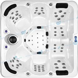 Стоит отметить, что расположение гидромассажных форсунок в данном СПА-бассейне уникально, поскольку они оказывают воздействие на всю спину от шеи и до поясницы, массируя самые проблемные зоны. Благодаря тому, что для каждого места в чаше форсунки установлены по-разному, у пользователей есть возможность делать акцент на массаж тех или иных зон. Сочетание водяных и воздушных форсунок в конструкции бассейна позволяет улучшить гидромассажный эффект, также создается роскошный эффект пузырьков.